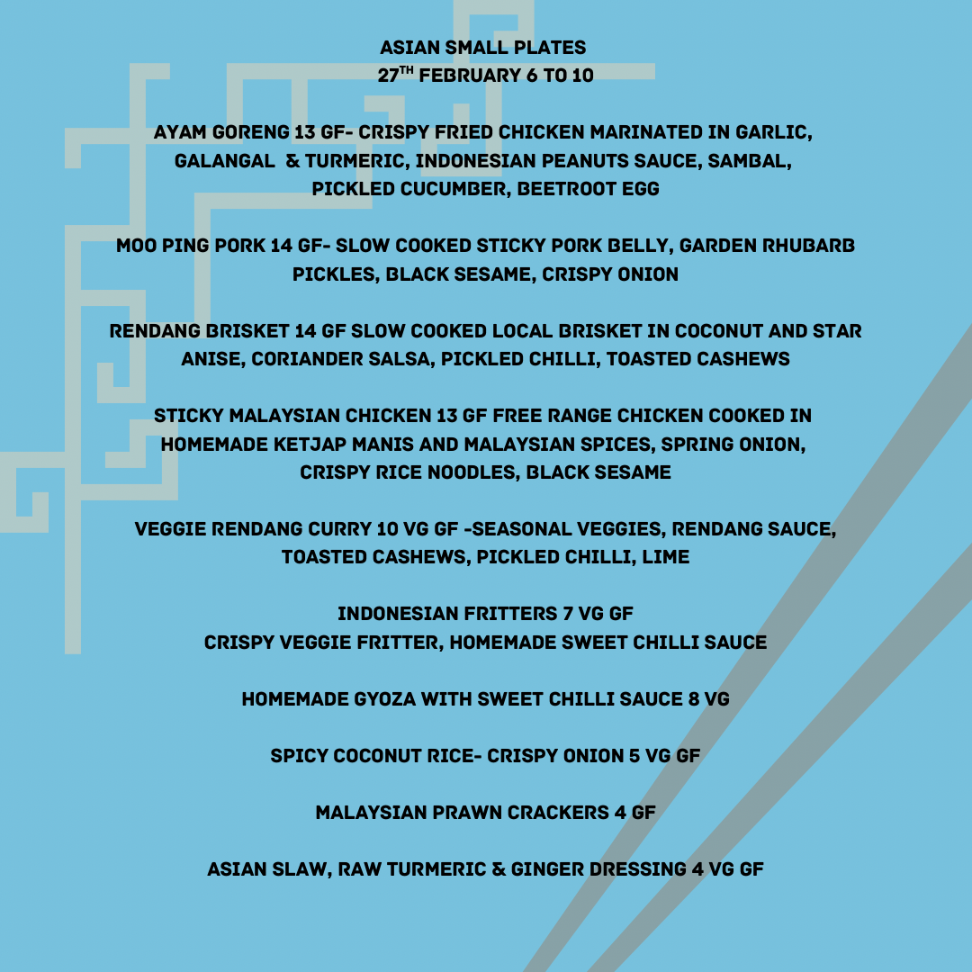 Gluten-free, dairy free and vegan menu options are available.
